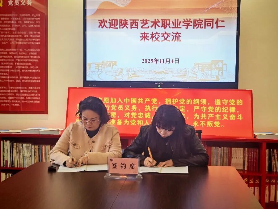 11月4日,陕西艺术职业学院舞蹈学院院长彭飞一行9人来我院开展党建工作交流暨支部共建活动。双方通过实地参观、座谈交流、签约共建等多种形式,精准对接需求、共享优质资源,推动基层党组织实现优势互补、协同发展。