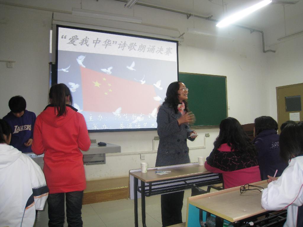 11月4日下午,由师范教育系团总支主办、普通话艺术协会承办的“爱我中华”诗歌朗诵比赛决赛在722教室举行。我系鱼国超、汤文华、卢妙琴、李翠平、周娜等老师受邀担任评委。