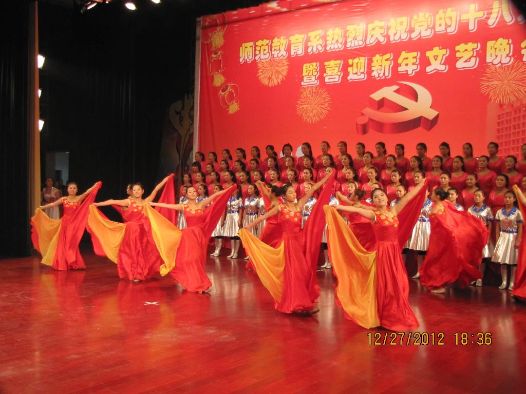 12月27日晚7时许,师范教育系在演播大厅举办了一场盛大的迎新春文艺晚会。本次晚会是在党的十八大胜利召开暨庆祝2013年元旦举行的一场文艺晚会。来此学生处、兄弟系部的领导和学生代表、该系全体师生参加。