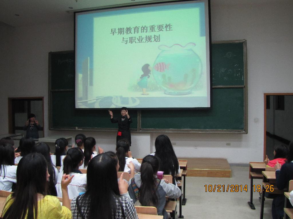 10月21日晚19点,师范学院在教学楼203召开了“早期教育的重要性与职业规划”报告会。学院特别邀请陕西中医学院第二附属医院早教中心主任程海燕讲座。报告会围绕“什么是早期教育”、“早期教育的重要性”、“早期教育职业规划”等主题,通过生动的事例对早期教育的重要性进行了深刻的分析和阐述。此次报告会让学生对早期教育专业有了更加客观真实的的了解,也使学生们对早期教育职业前景充满了信心。
