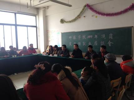 11月15日,师范学院邀请40多名毕业生家长代表参与校园招聘会并与各部门负责同志一起进行座谈。座谈会由师范学院党总支书记尚英武主持。尚书记对各位家长的到来表示欢迎和感谢,指出学生入学的时候大都由家长高高兴兴送来,现在学生即将毕业进行顶岗实习,邀请各位家长来是对我们培养的人才质量进行检验,也请各位家长关注学生的顶岗实习和预就业工作,当好学生的参谋,力争使学生优质就业,让学生和家长开开心心离校,达到育人惠民的办学宗旨。恳请各位家长对我们在教育教学和学生管理工作中的不足提出意见和建议。家长代表积极发言,对毕业生的培养质量进行了充分肯定,并对学生顶岗实习安全等方面提出了建议。师范学院院长陈刚对家长提出的问题进行了解答和表态。会后,陈院长、尚书记陪同学生家长代表参观了学生基本功展览。最后学生家长在学生陪同下积极参与顶岗实习预就业招聘活动。