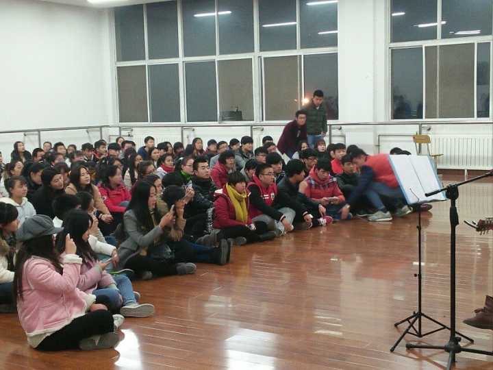 2015年12月22日晚,咸阳职业技术学院大学生艺术团青草民谣社在艺术楼202室成功举办了主题为“吉他”的青草民谣社吉他沙龙。民谣社的同学先后演唱,将活动推向了一个又一个的高潮,也为观众们奉上了一出具有人文文化和艺术气息的音乐展演。