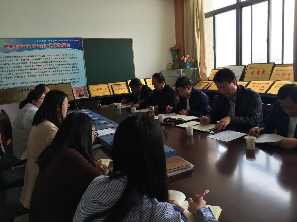 4月21日上午,学院党委副书记张建刚、宣传统战部部长第五剑盈、 学生处处长李安琪 、思政部党总支书记,主任王振刚 、副主任余江涛等一行五人到师范学院进行思想政治工作调研。