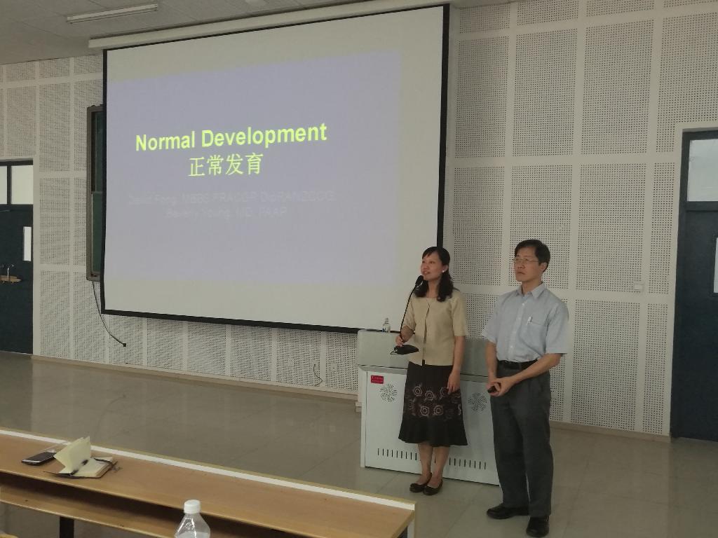 此次讲座,Dr. David全程用英文讲述了0-6岁儿童的成长发育历程和社交技能表症,并配以生动的图片为大家做以解释,何主任担任翻译。讲座结束后,Fong医生就同学们关心的问题进行回答和交流。