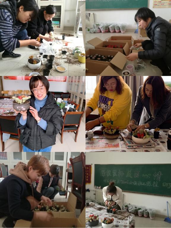 为庆祝“三八国际妇女节”,丰富女教职工生活,打造优美办公环境,师范学院于3月8日上午举办“绿植装扮,美丽心情”女教职工多肉植物插花DIY活动。