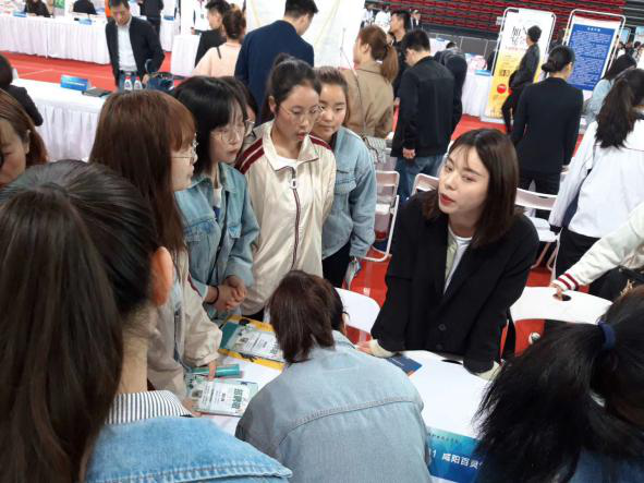 当日会场气氛热烈,所有应聘的学生都手持自己精心准备好的自荐书和简历等资料,自信满满的穿梭在人流之中,积极与应聘人员交流,主动了解用人单位的情况。